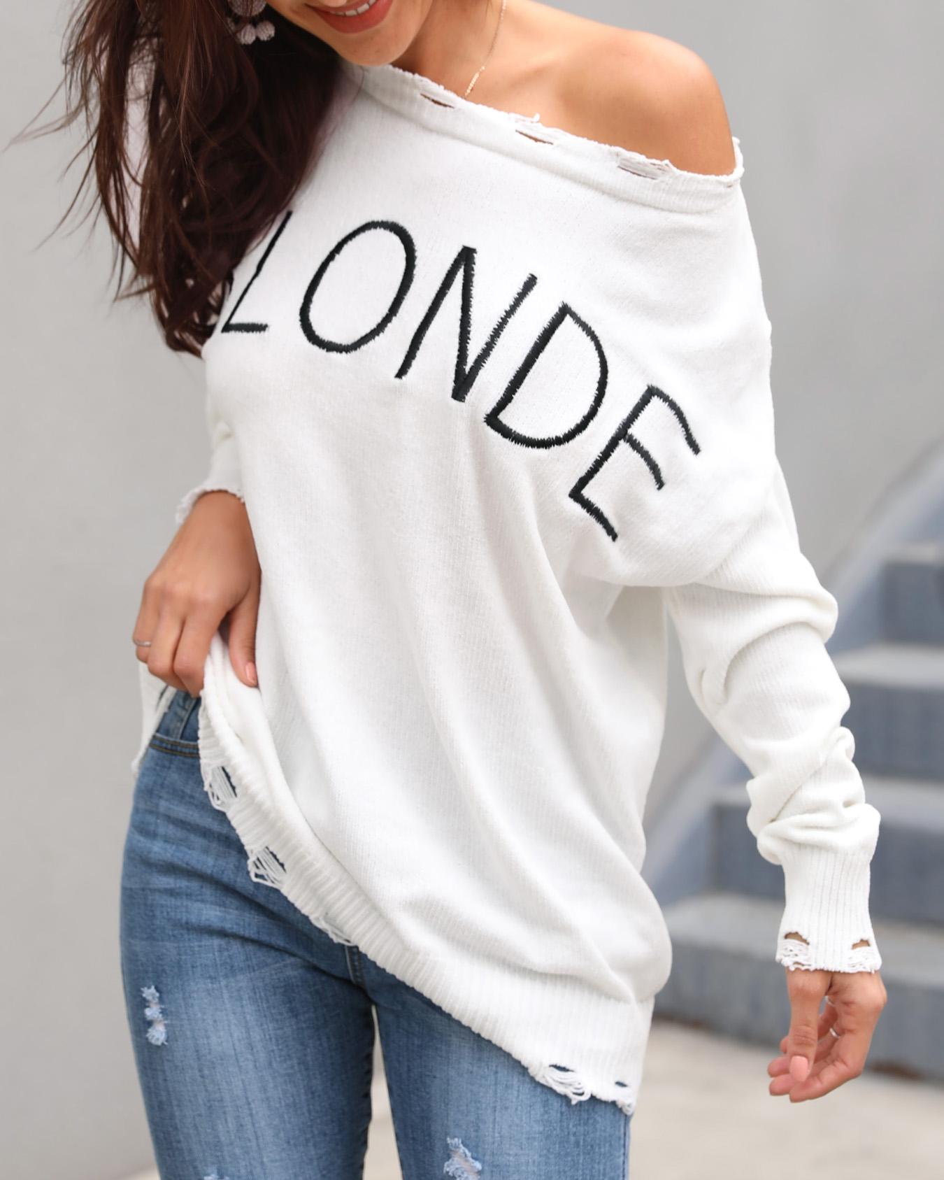 Letter Print Fringe Hem Casual Sweaters