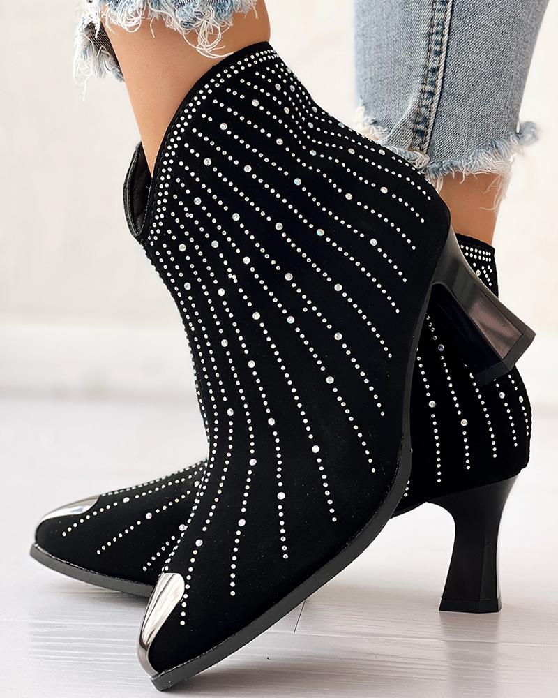 Rhinestone Decor Chunky Heel Ankle Boots
