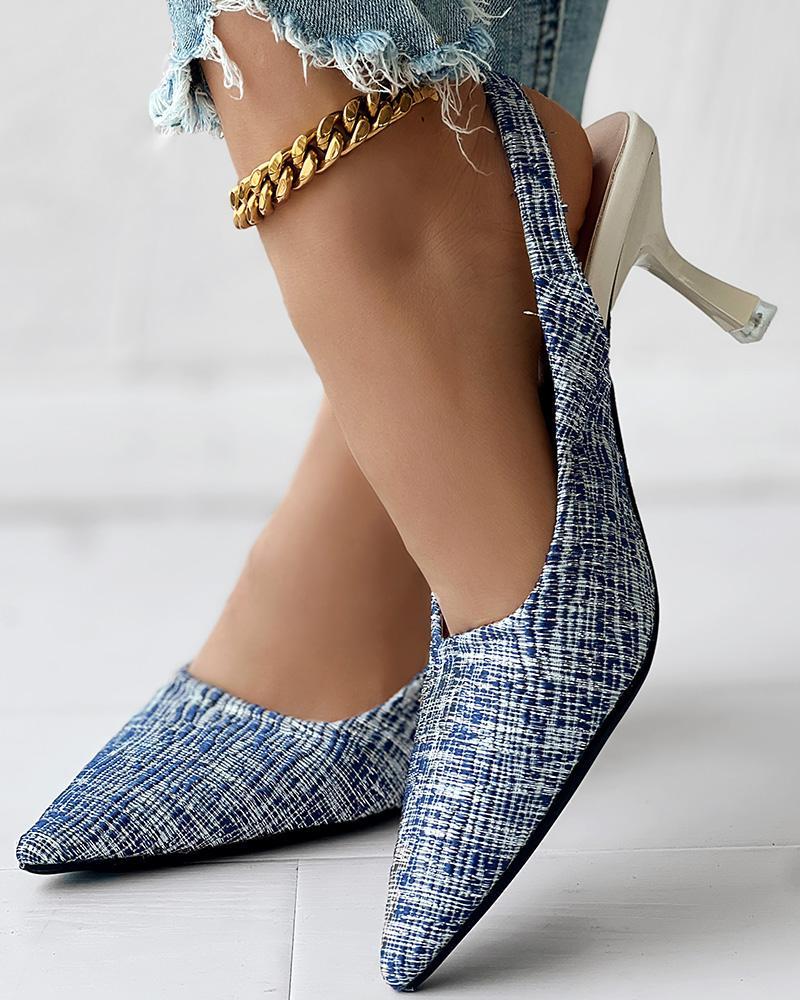 Style:Chic Type:Pumps Pattern Type:Contrast Paneled Occasion:Daily Toe:Point Toe Heel Height:Low Heel Package Include:1*Pumps Strap Type:Slingback