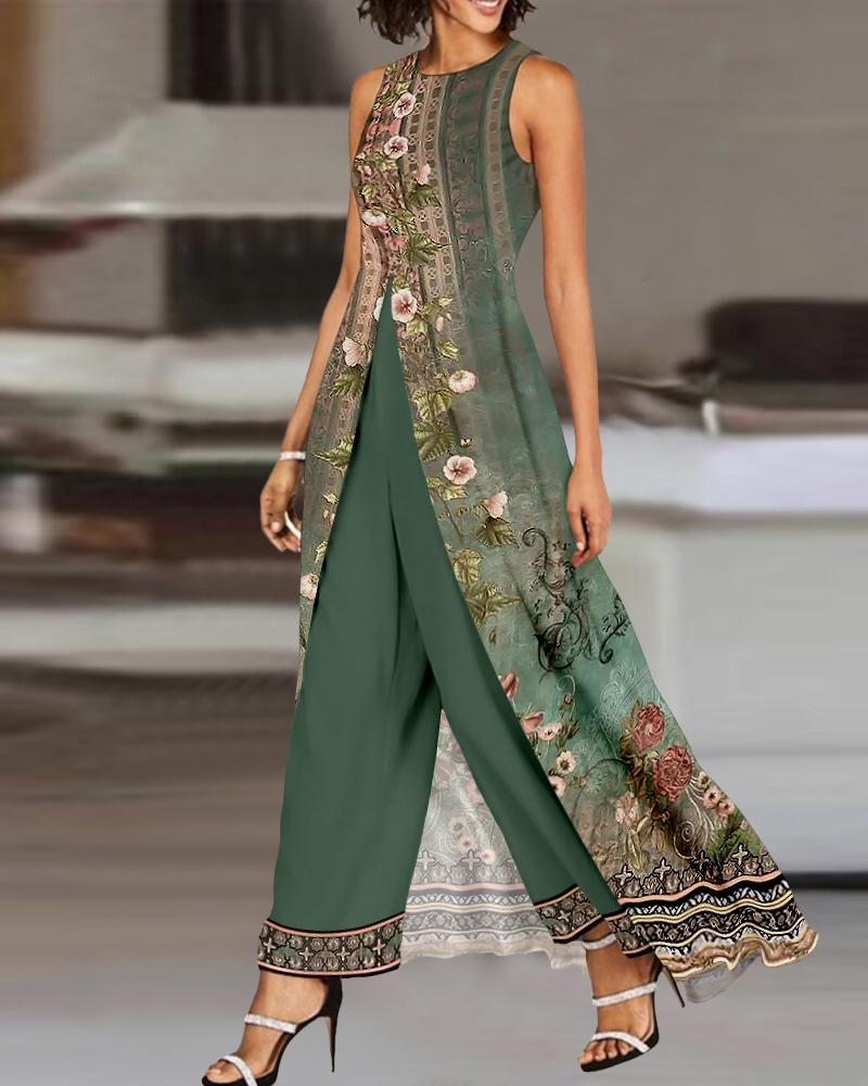 Style:Casual,Chic Type:Jumpsuit Material:95%Polyester,5%Elastane Neckline:Round Neck Sleeve Style:Sleeveless Length:Long Pattern Type:Colorblock,Floral,Tribal Decoration:Ruched Fit Type:Regular Occasion:Daily Package Include:1*Jumpsuit Fabric Elasticity:Non-Stretch Sheer:No Care Instructions:Machine wash or professional dry clean