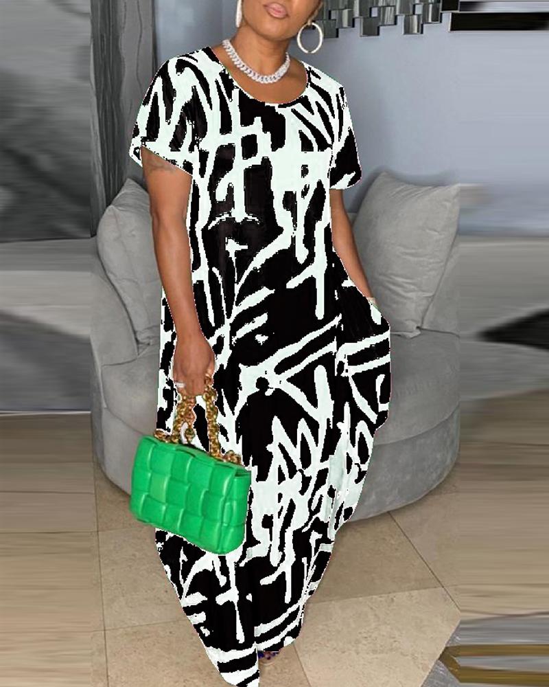 Style:Casual Type:Straight Material:Polyester Neckline:Round Neck Sleeve Style:Short Sleeve Length:Maxi Pattern Type:All Over Print Decoration:Pocket Fit Type:Regular Occasion:Daily Package Include:1* Dress