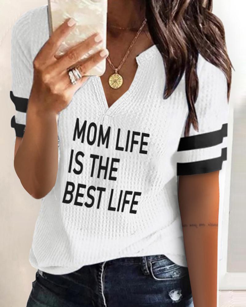 Style:Casual Type:Tee Material:97%Polyester,3%Spandex Neckline:V-Neck Sleeve Style:Short Sleeve Length:Regular Pattern Type:Letter,Striped Decoration:Mother's Day Fit Type:Regular Occasion:Daily Package Include:1*T-Shirt