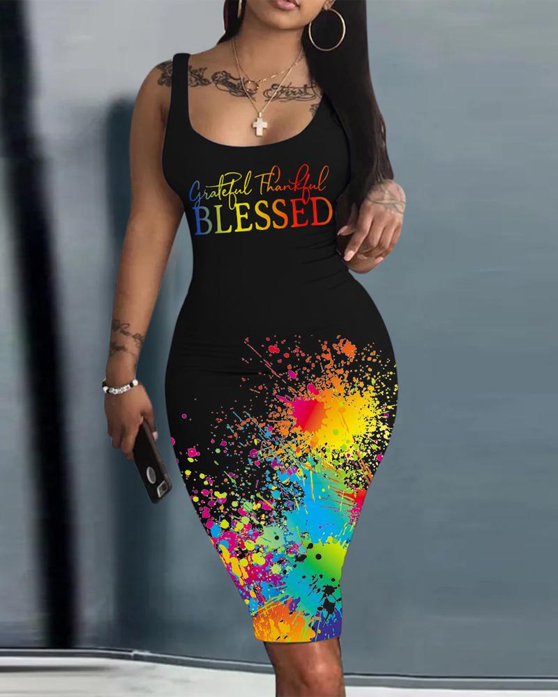 Grateful Thankful Blessed Ink Splash Print Bodycon Dress