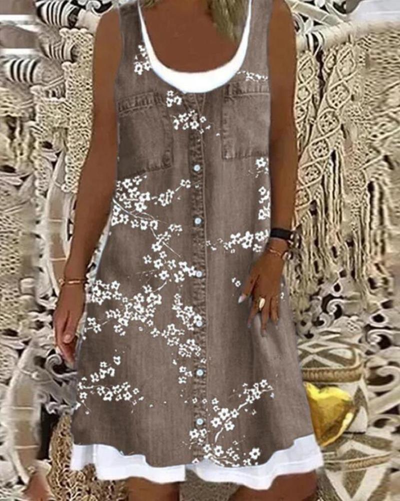 Style:Casual Type:Tank Material:Polyester Neckline:Scoop Neck Sleeve Style:Sleeveless Length:Mini Pattern Type:Floral Decoration:Button,Pocket Fit Type:Regular Occasion:Daily Package Include:1* Dress Fabric Elasticity:Non-Stretch Sheer:No Care Instructions:Machine wash or professional dry clean