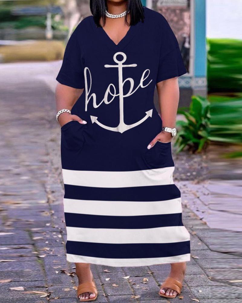 Style:Basics,Casual Type:Straight,Tee Material:97%Polyester,3%Spandex Neckline:V-Neck Sleeve Style:Short Sleeve Length:Maxi Pattern Type:Anchor,Letter,Striped Decoration:Pocket Fit Type:Oversized Occasion:Daily Package Include:1* Dress Fabric Elasticity:Slight Stretch Sheer:No Care Instructions:Machine wash or professional dry clean
