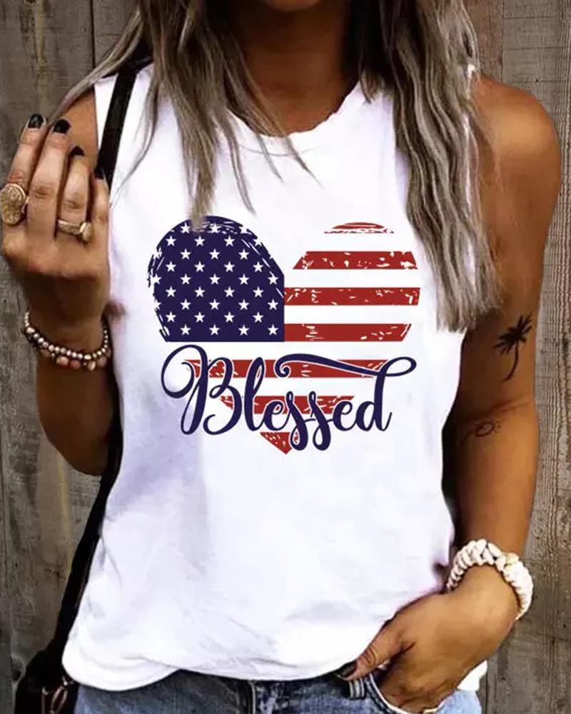 Independence Day Blessed Flag Heart Print Tank Top