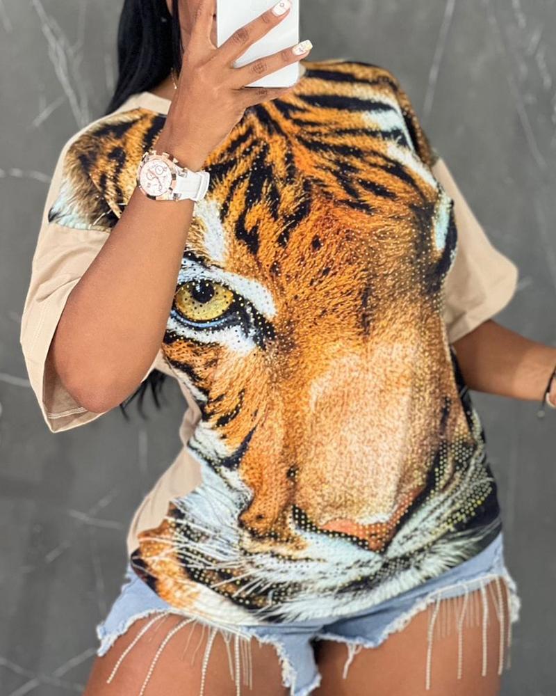 Tiger Print Short Sleeve Casual T-shirt