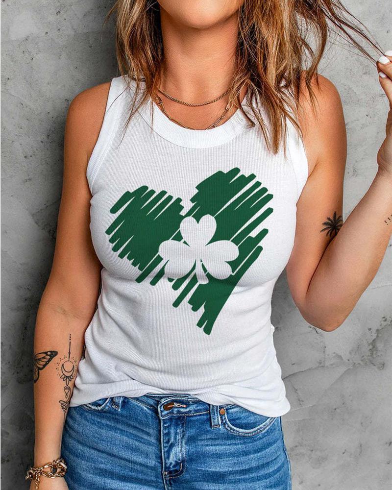 St. Patrick's Day Lucky Shamrock Heart Print Tank Top