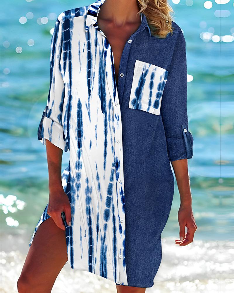 Tie Dye Print Patchwork Buttoned Shirt Dress