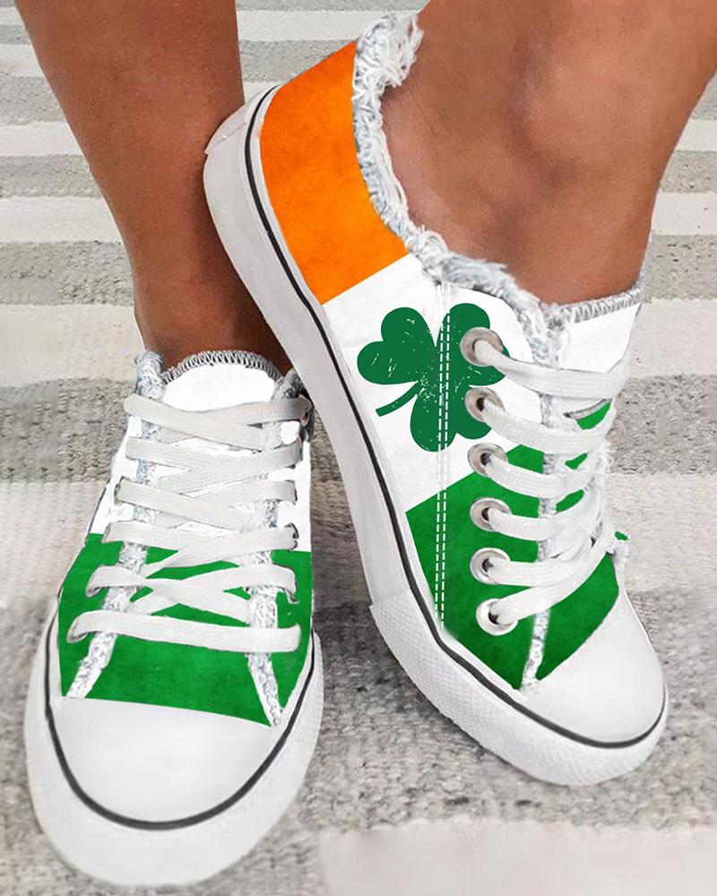 St. Patrick's Day Clover Print Colorblock Canvas Sneakers