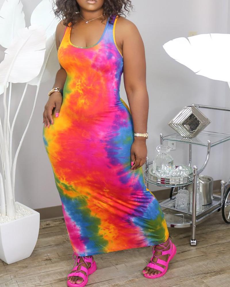 Tie Dye Print U-Neck Sleeveless Maxi Dress