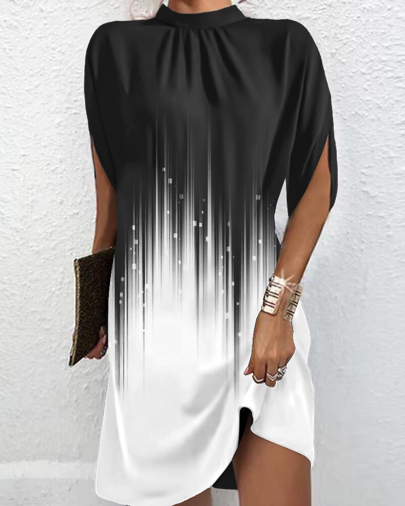 Style:Casual,Chic Type:Straight Material:97%Polyester,3%Spandex Neckline:Mock Neck Sleeve Style:Half Sleeve Length:Mini Pattern Type:Abstract,Colorblock Decoration:Ruched Fit Type:Regular Occasion:Daily Package Include:1* Dress Fabric Elasticity:Non-Stretch Sheer:No Care Instructions:Machine wash or professional dry clean Waist Line:Natural
