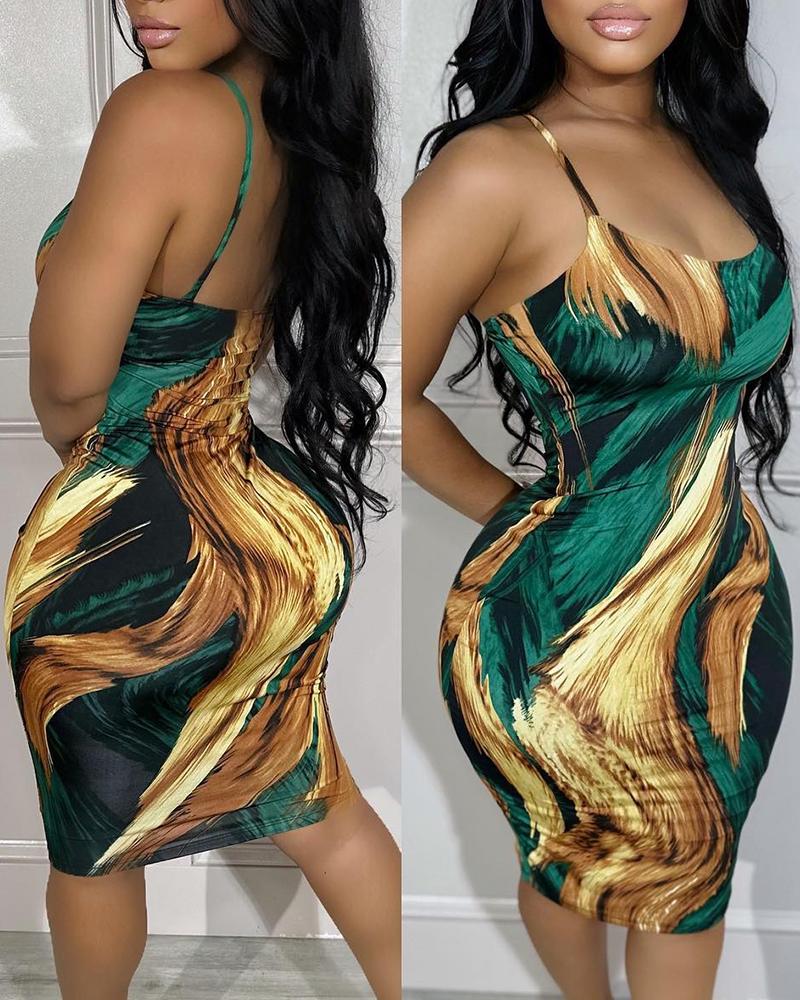 Abstract Print Spaghetti Strap Bodycon Dress