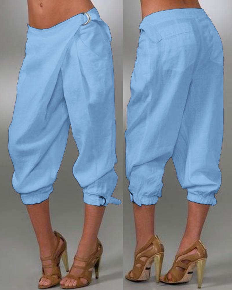 Style:Casual Type:Cuffed Material:100%Polyester Length:Capris Pattern Type:Plain Decoration:Buckle,Pocket Fit Type:Regular Occasion:Daily Package Include:1*Pants Fabric Elasticity:Slight Stretch Sheer:No Care Instructions:Machine wash or professional dry clean