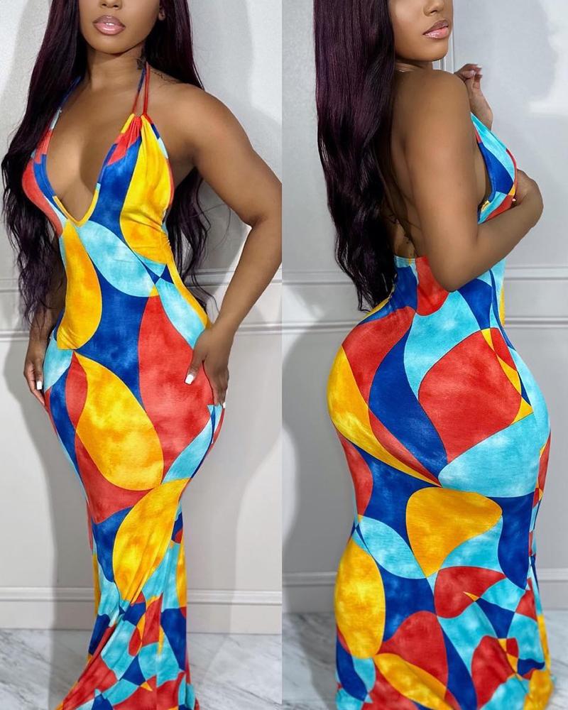 Style:Chic Type:Straight Material:97%Polyester,3%Spandex Neckline:Halter Sleeve Style:Sleeveless Length:Maxi Pattern Type:Colorblock Decoration:Backless Fit Type:Regular Occasion:Daily,Vacation Package Include:1* Dress Fabric Elasticity:Non-Stretch Sheer:No Care Instructions:Machine wash or professional dry clean Waist Line:Natural
