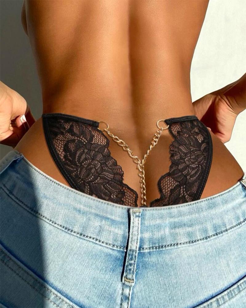 Chain Decor Lace Thong Panty