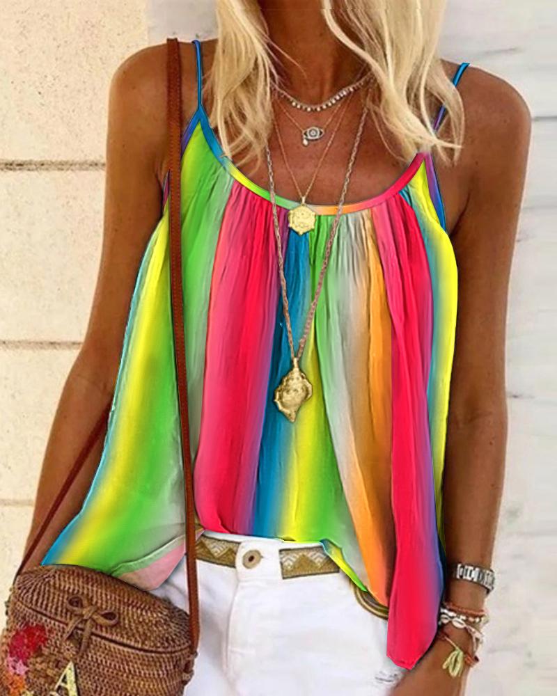 Style:Casual Type:Cami Material:97%Polyester,3%Spandex Neckline:Scoop Neck Sleeve Style:Spaghetti Strap Length:Regular Pattern Type:Ombre,Tie Dye Decoration:Ruched Fit Type:Regular Occasion:Daily,Vacation Package Include:1*Top