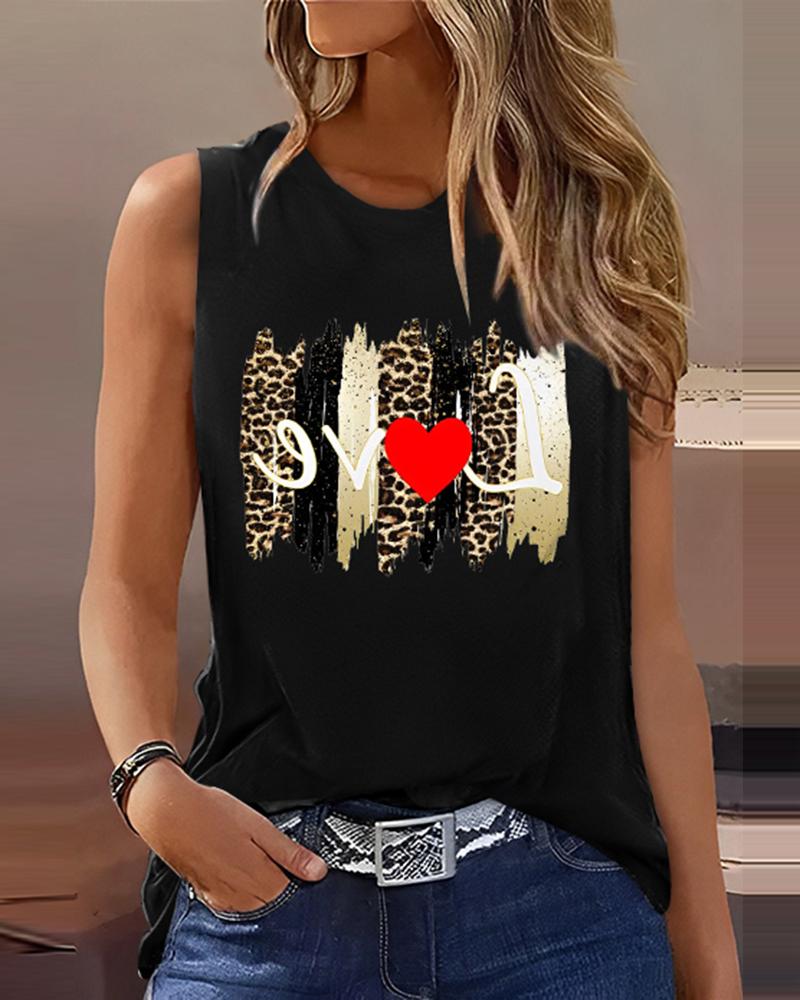 Leopard Love Heart Print Casual Tank Top