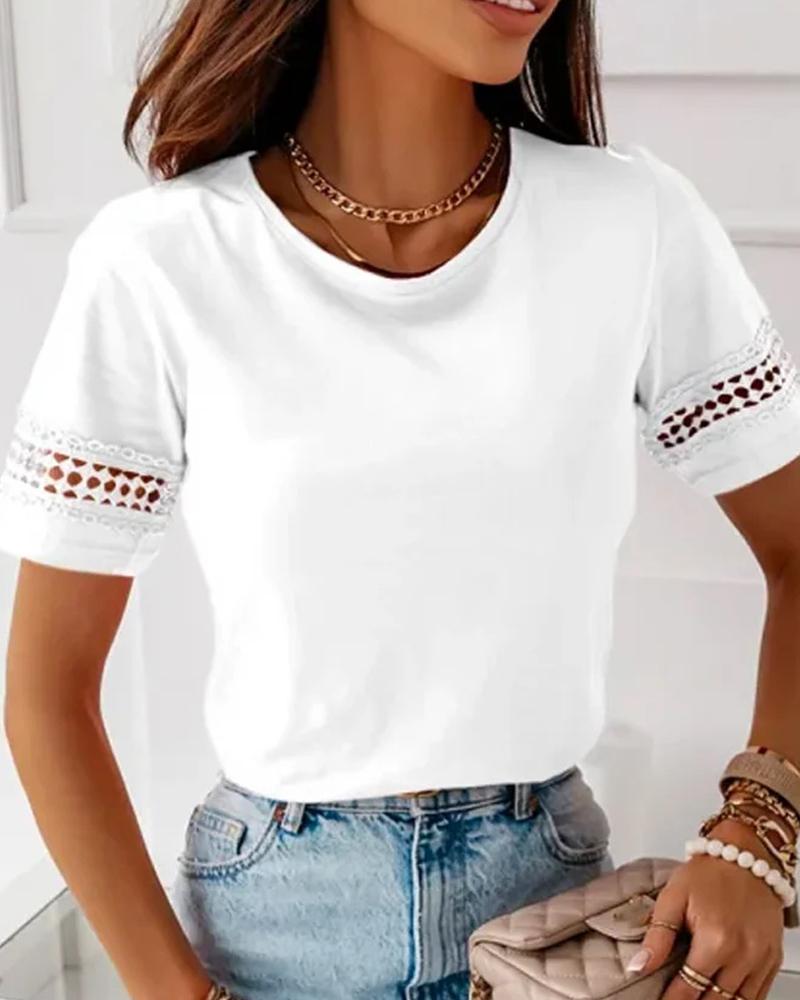 Style:Casual Type:Tee Material:97%Polyester,3%Spandex Neckline:Round Neck Sleeve Style:Short Sleeve Length:Regular Pattern Type:Plain Decoration:Hollow-out Fit Type:Regular Occasion:Daily Package Include:1*T-Shirt