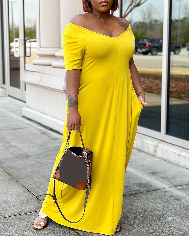 Style:Casual Type:Straight Material:97%Polyester,3%Spandex Neckline:V-Neck Sleeve Style:Short Sleeve Length:Maxi Pattern Type:Plain Fit Type:Regular Occasion:Daily Package Include:1* Dress