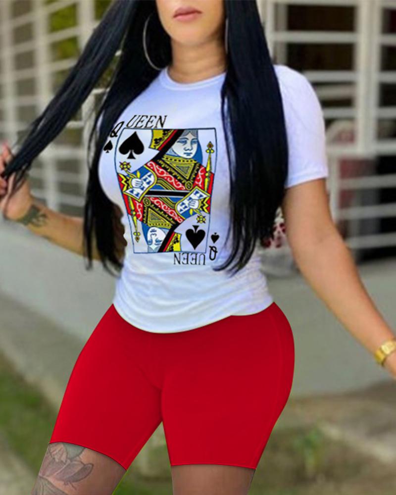 Poker Print Short Sleeve Top & Shorts Set