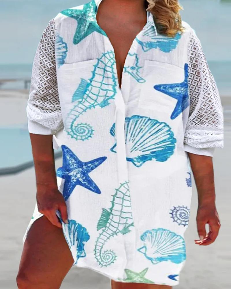 Plus Size Geo Tape Patch Buttoned Slit Shirt