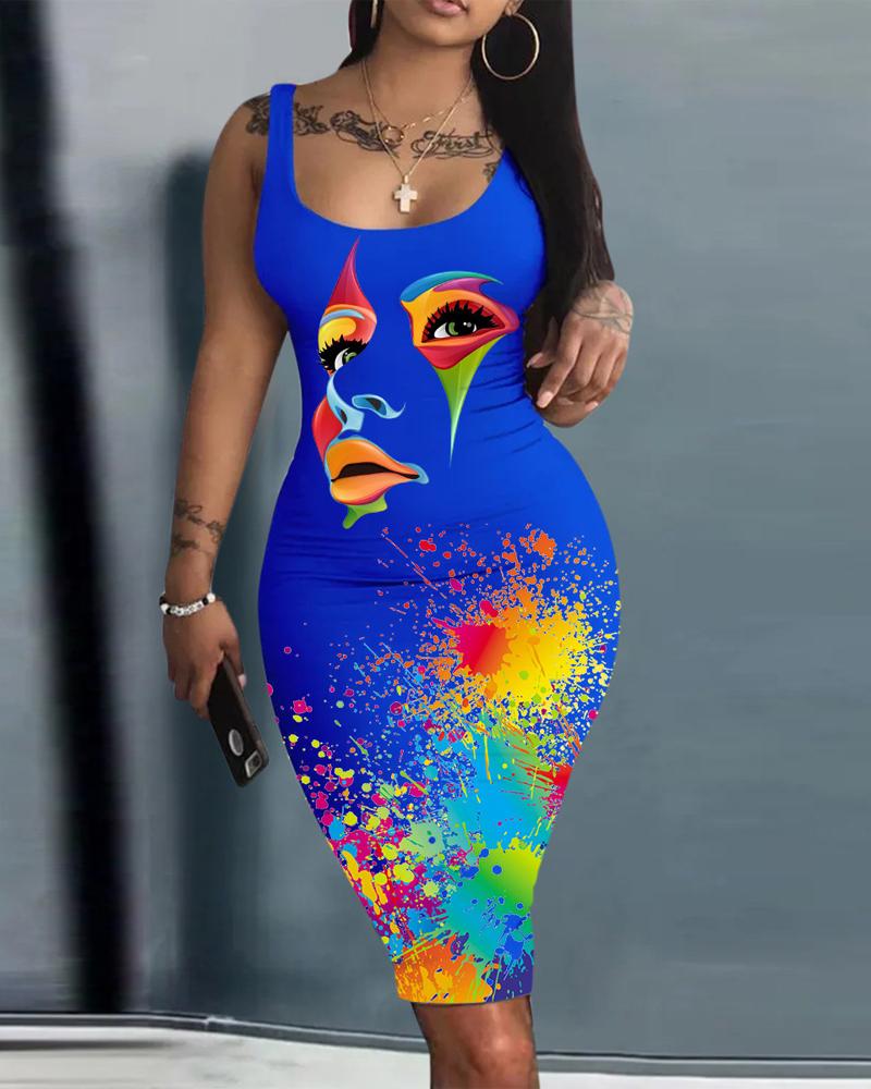 Figure Ink Splash Print Sleeveless Bodycon Dress