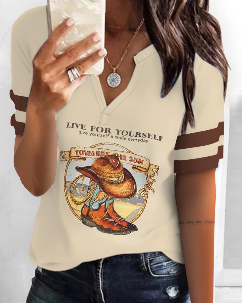 Style:Casual,Vintage Type:Regular Material:97%Polyester,3%Spandex Neckline:V-Cut Sleeve Style:Short Sleeve Length:Regular Pattern Type:Graphic,Letter Fit Type:Regular Occasion:Daily Package Include:1*T-Shirt