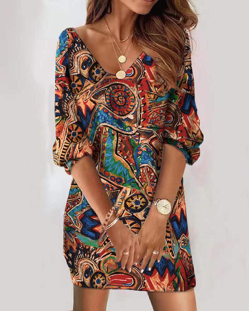 Tribal Print V-Neck Casual Dress