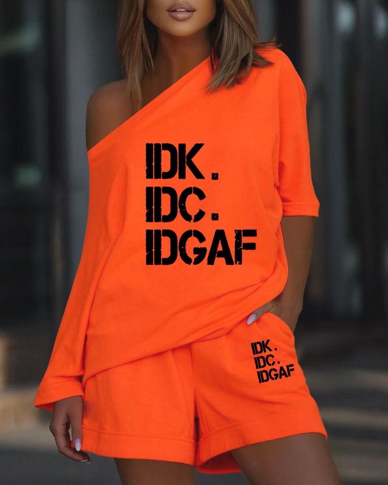 IDK IDC IDGAF Cute Funny Print Casual Top & Shorts Set