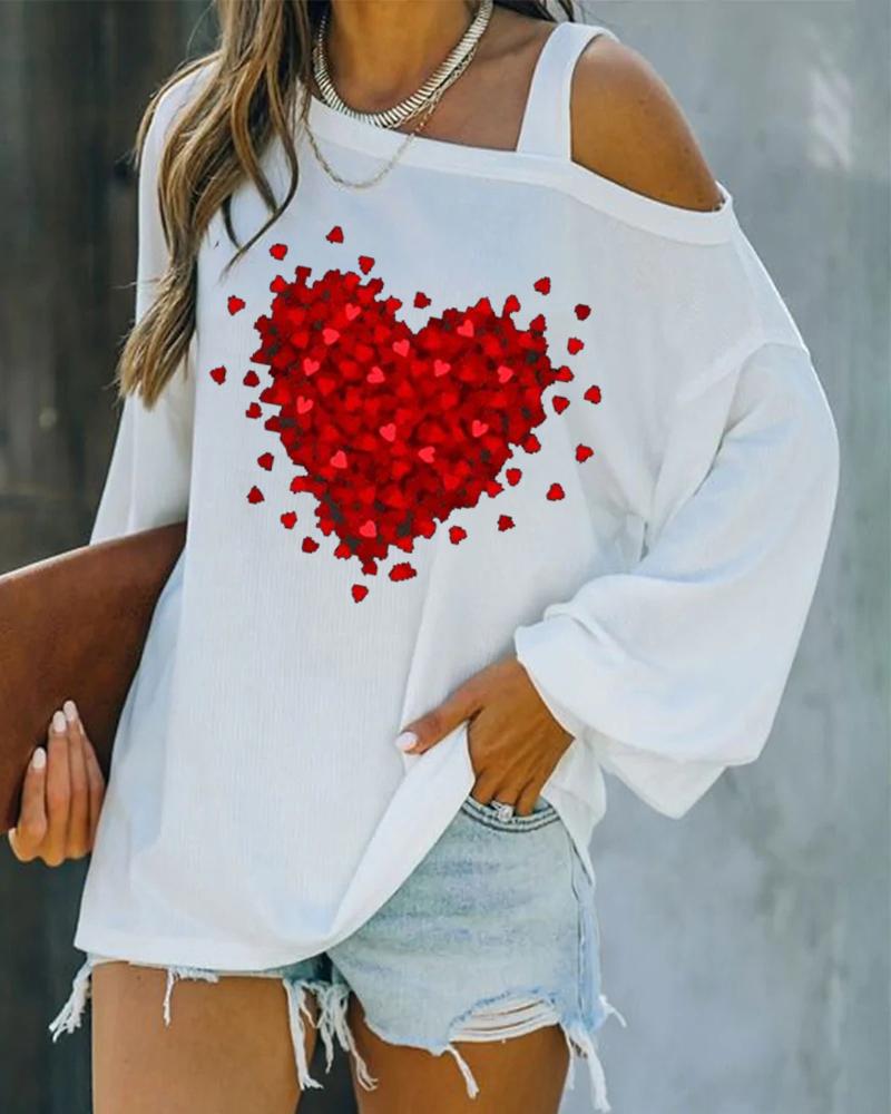 Valentine's Day Heart Print Cold Shoulder Top
