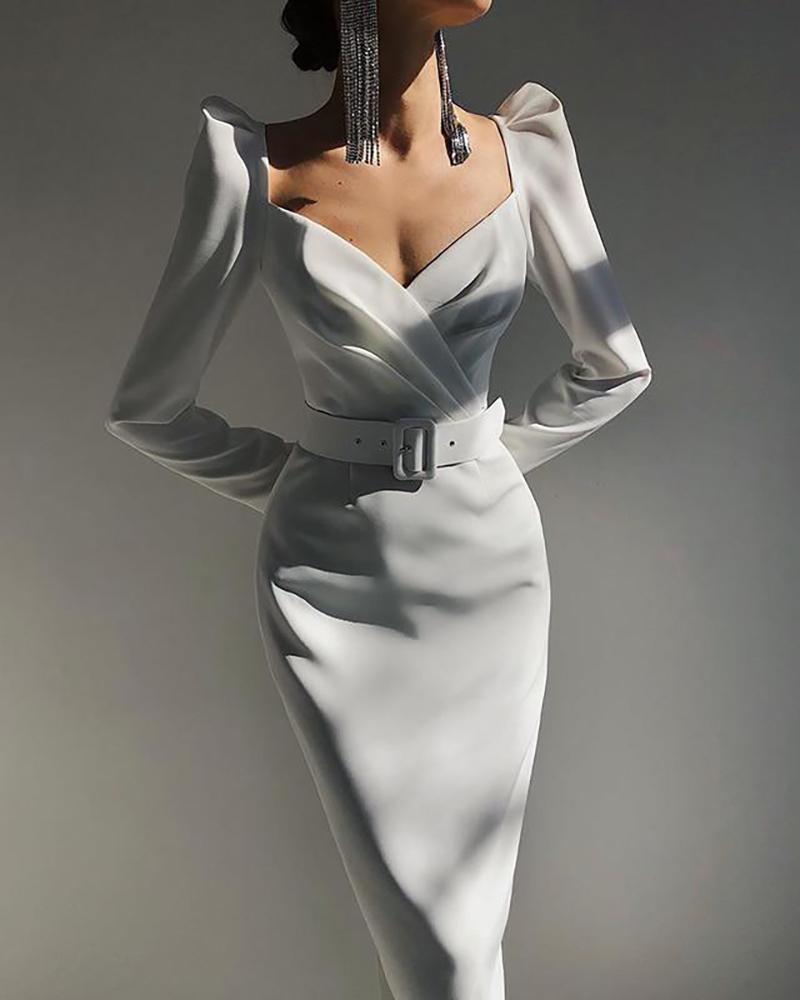 Deep V-Neck Split Thigh Ruched Mermaid Dress
