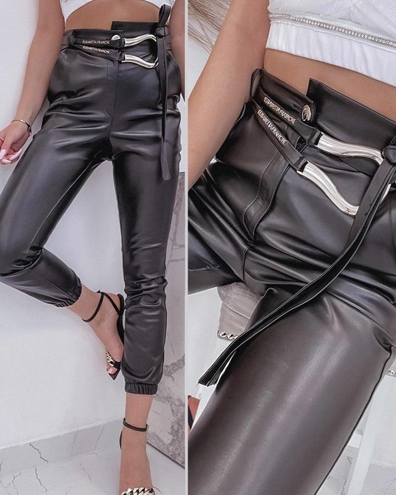 Style:Casual Type:Cuffed,High Waist Material:97%Polyester,3%Spandex Length:Long Pattern Type:Plain Decoration:Pocket,Zipper Fit Type:Skinny With Belt:Yes Occasion:Daily Package Include:1*Pants (With Belt)