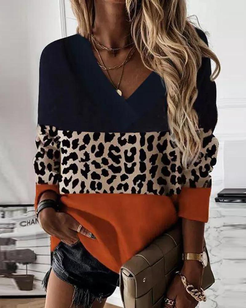 Style:Casual Type:Sweatshirt Material:97%Polyester,3%Spandex Neckline:V-Neck Sleeve Style:Long Sleeve Length:Regular Pattern Type:Colorblock,Leopard Fit Type:Regular Occasion:Daily Package Include:1*Sweatshirt