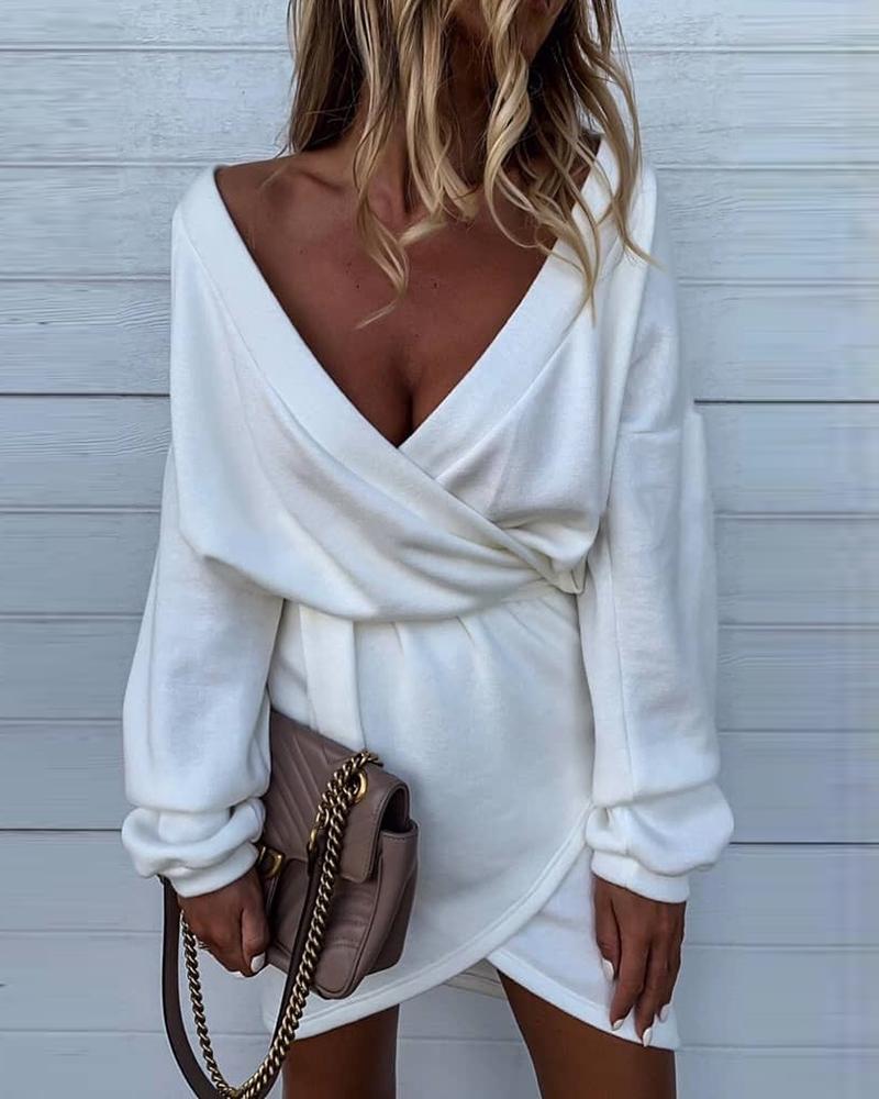 Style:Sexy Type:Wrap Material:97%Polyester,3%Spandex Neckline:V-Neck Sleeve Style:Long Sleeve Length:Mini Pattern Type:Plain Decoration:Tied Detail Fit Type:Regular Occasion:Daily Package Include:1* Dress