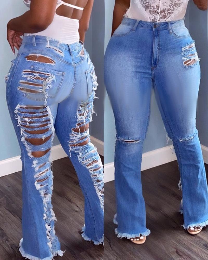 Style:Chic,Denim,Sexy Type:Flared Pants,Jeans Material:100%Polyester Length:Long Pattern Type:Plain Decoration:Button,Cutout,Pocket,Raw Hem,Ripped,Washed,Zipper Fit Type:Skinny Occasion:Daily Package Include:1*Jeans