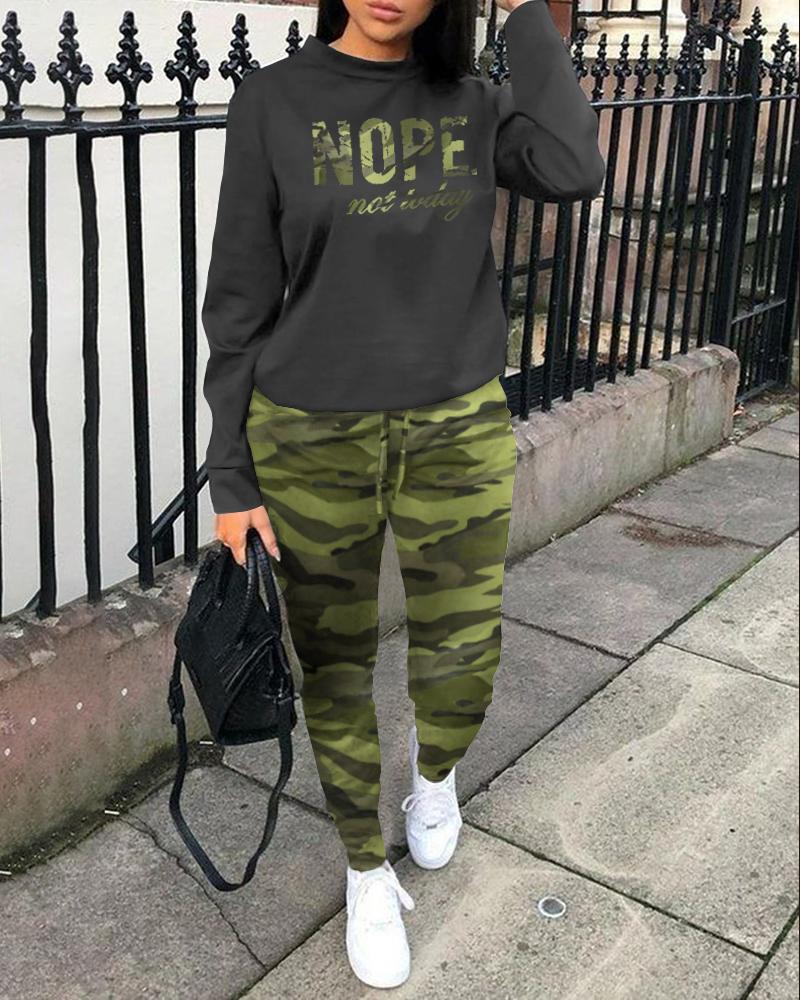 Style:Casual Type:Sweatpants Sets,Sweatshirt Sets Material:97%Polyester,3%Spandex Neckline:O-neck Sleeve Style:Long Sleeve Length:Long Pattern Type:Camouflage,Letter Decoration:Drawstring Fit Type:Regular Occasion:Daily Package Include:Pants Set Fabric Elasticity:Slight Stretch Sheer:No Care Instructions:Machine wash or professional dry clean