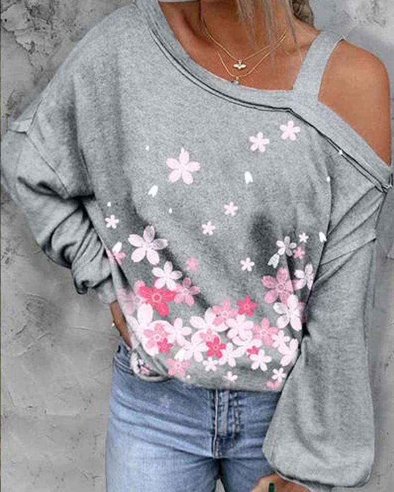 Style:Casual Type:Tee Material:97%Polyester,3%Spandex Neckline:Cold Shoulder Sleeve Style:Long Sleeve Length:Regular Pattern Type:Floral Fit Type:Regular Occasion:Daily Package Include:1*Top
