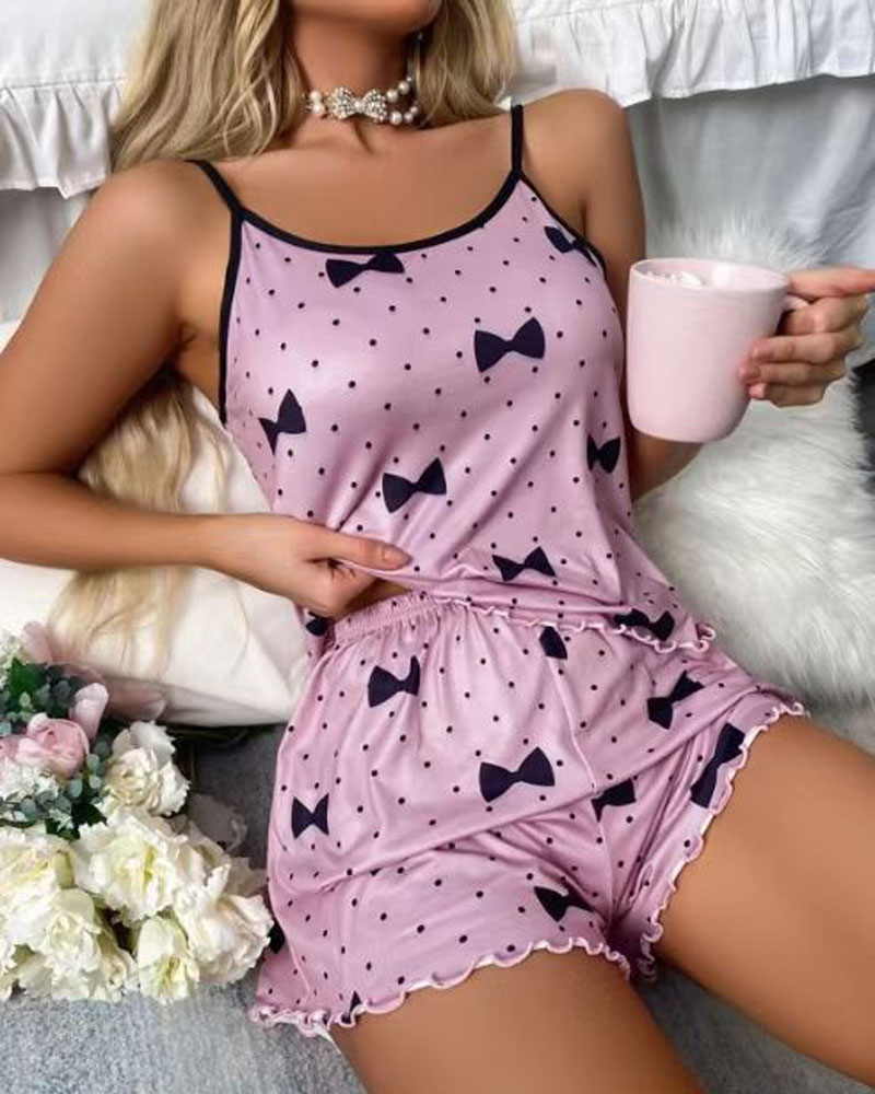 Polka Dot Bowknot Print Cami Set