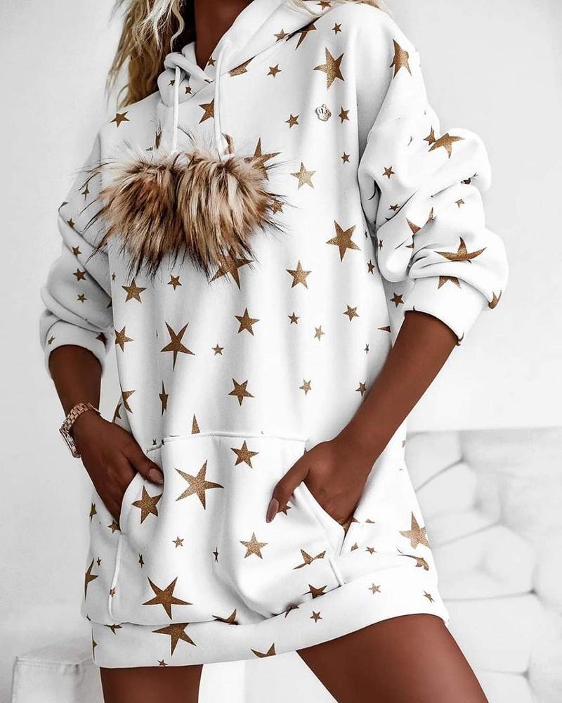 Style:Casual Type:Hoodie Material:97%Polyester,3%Spandex Neckline:Hooded Sleeve Style:Long Sleeve Length:Regular Pattern Type:Star Decoration:Pocket,Pom Pom Fit Type:Regular Occasion:Daily Package Include:1*Sweatshirt
