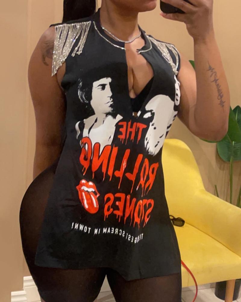 Style:Casual Type:Tank Material:97%Polyester,3%Spandex Neckline:O-neck,V-Cut Sleeve Style:Sleeveless Length:Regular Pattern Type:Figure,Letter,Lip,Slogan Decoration:Slit,Tassel Fit Type:Regular Occasion:Daily,Night Out Package Include:1* Top
