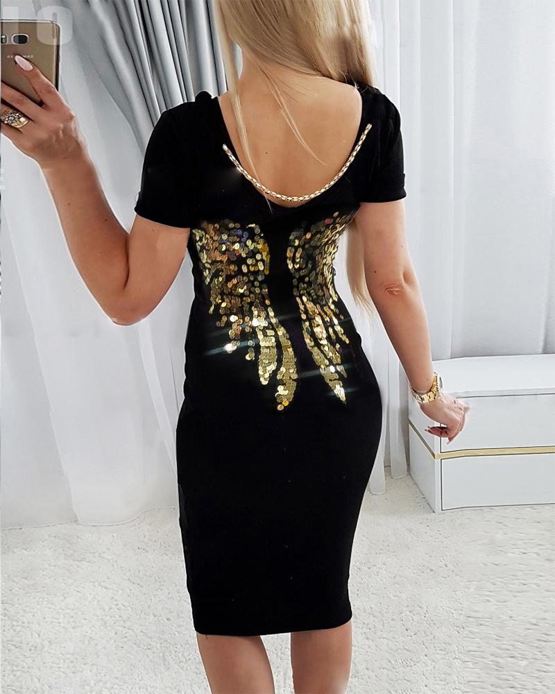 Chain Decor Sequin Wings Casual Dress