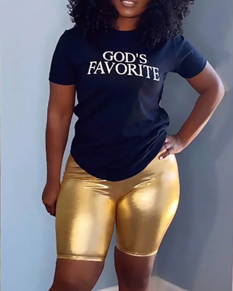 Style:Casual,Chic Type:Shorts Set Material:97%Polyester,3%Spandex Neckline:O-neck Sleeve Style:Short Sleeve Length:Above Knee Pattern Type:Letter Fit Type:Regular Occasion:Daily Package Include:Shorts Sets