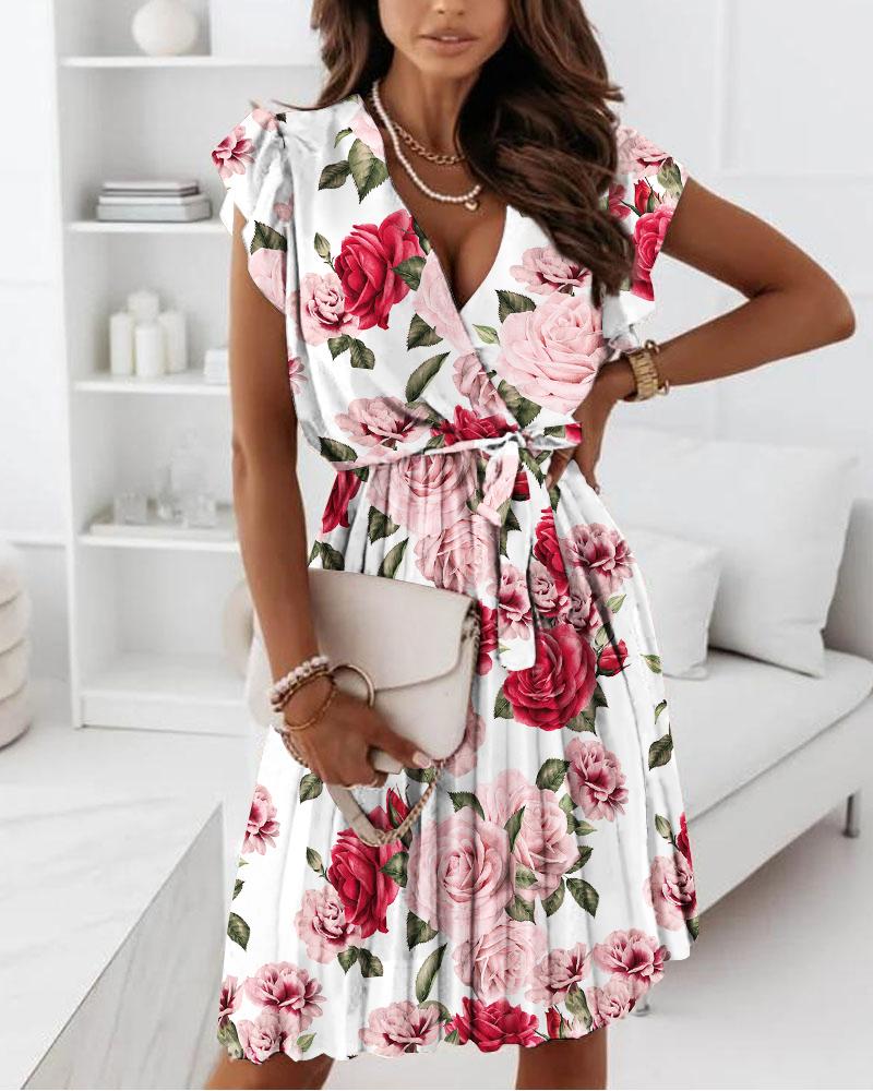 Feature: This dress features a wrap design, v-neckline, frill hemline and short butterfly sleeves making it an easy-to-wear statement piece.
