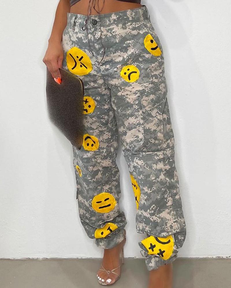 Pocket Button Design Drawstring Casual Pants