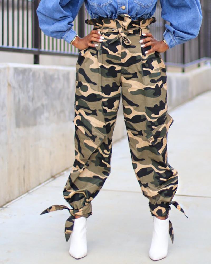Style:Chic Type:Cargo Pants,Cuffed Material:100%Polyester Length:Long Pattern Type:Camouflage Decoration:Pocket Fit Type:Regular With Belt:Yes Occasion:Daily Package Include:1*Pants