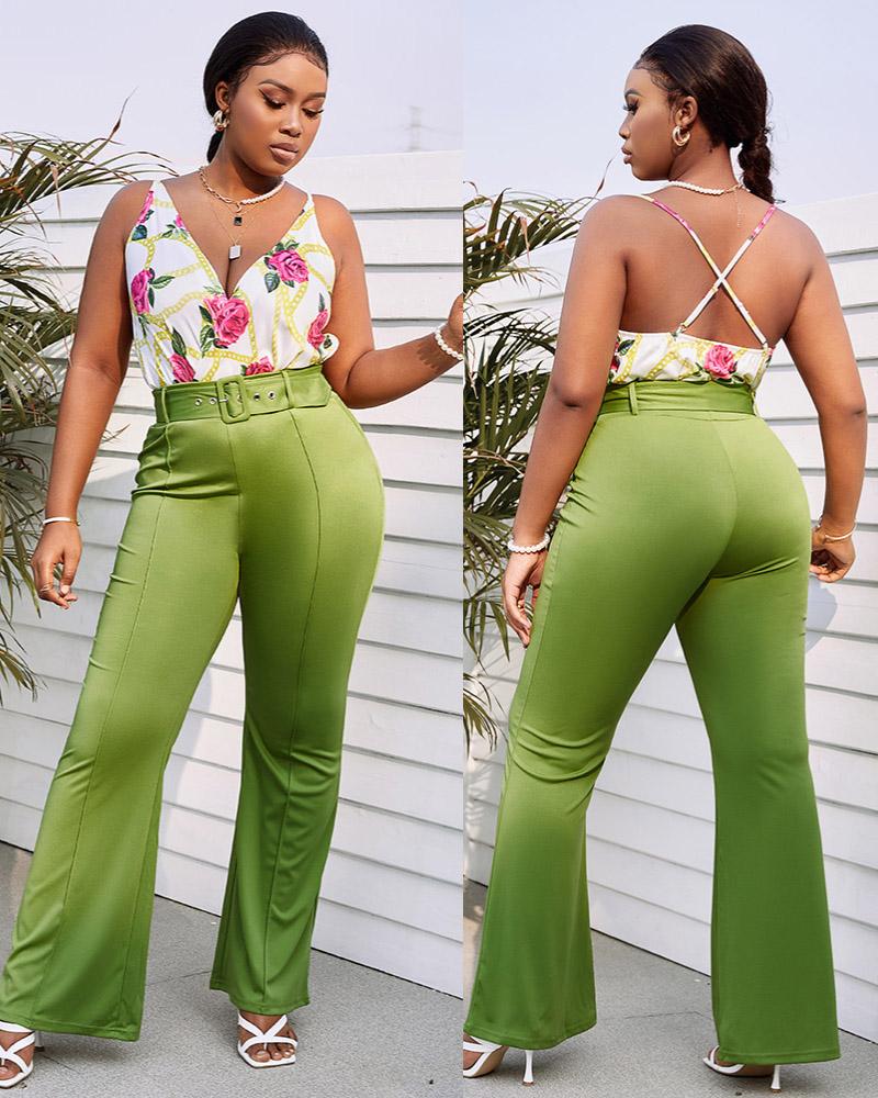 Style:Chic,Sexy Type:Pants Sets Material:97%Polyester,3%Spandex Neckline:V-Neck Sleeve Style:Spaghetti Strap Length:Long Pattern Type:Chain,Floral,Plain Decoration:Criss Cross Fit Type:Skinny With Belt:Yes Occasion:Daily Package Include:1*Pants Set (With Belt)