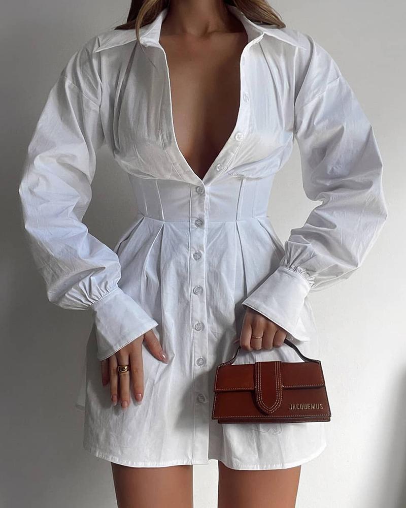 Long Sleeve Button Down Corset Shirt Dress