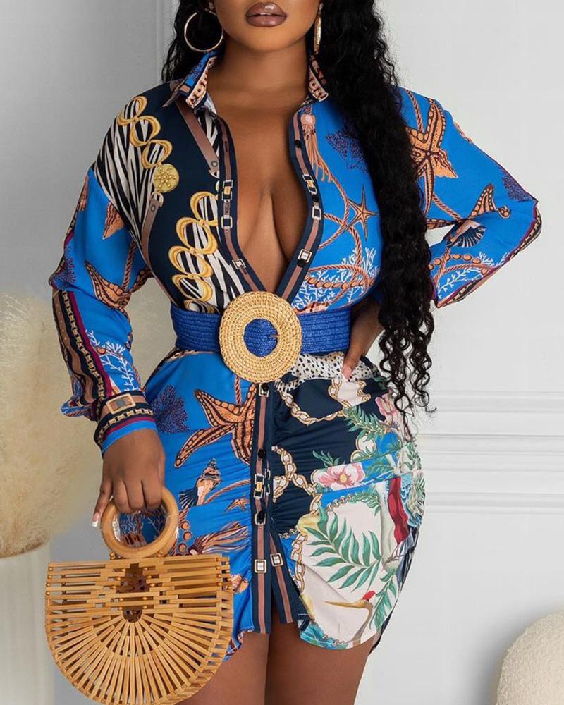 Style:Chic Type:Shirt Material:100%Polyester Neckline:Turn-down Collar Sleeve Style:Long Sleeve Length:Mini Pattern Type:Graphic,Scarf,Tropical Decoration:Button Fit Type:Regular Occasion:Daily,Vacation Package Include:1* Dress