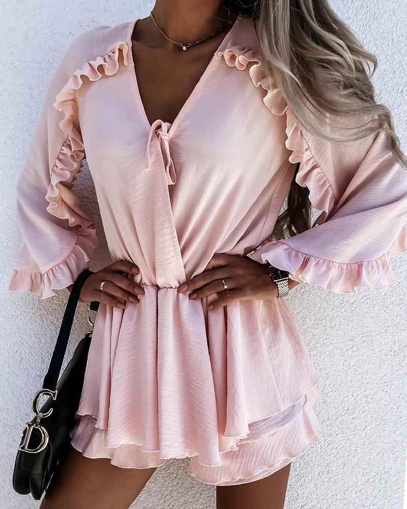 Pocket Design Drawstring Frill Hem Sleeveless Romper